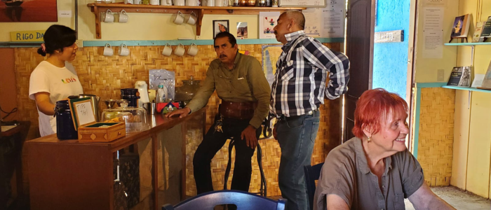 Take a stroll through the art gallery, and the adjacent the Mexican Vaquero museum, then drift back into Corralito and take in the Cualtecomate tree that provides grace and shade to our gathering area while your coffee is being crafted. After all, we roast our beans to perfection and to your specific taste, our baristas stellar!
